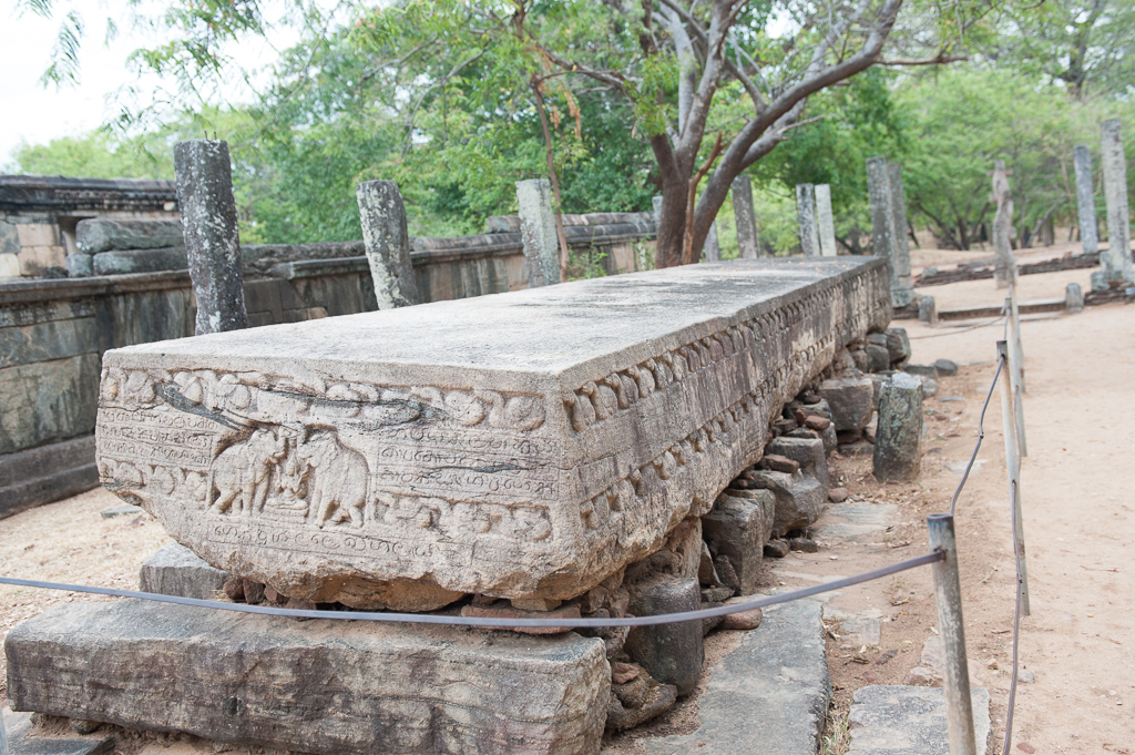 Gal Pota, or Stone Book, is an long granite carving of a palm leaf book that was used to record Buddhist texts and royal genealogies. However this slab praises the works of King #2, Nissankamalla, a Tamil prince from India who married into the Sinhalese nobility. He is the third Polonnaruwan king.